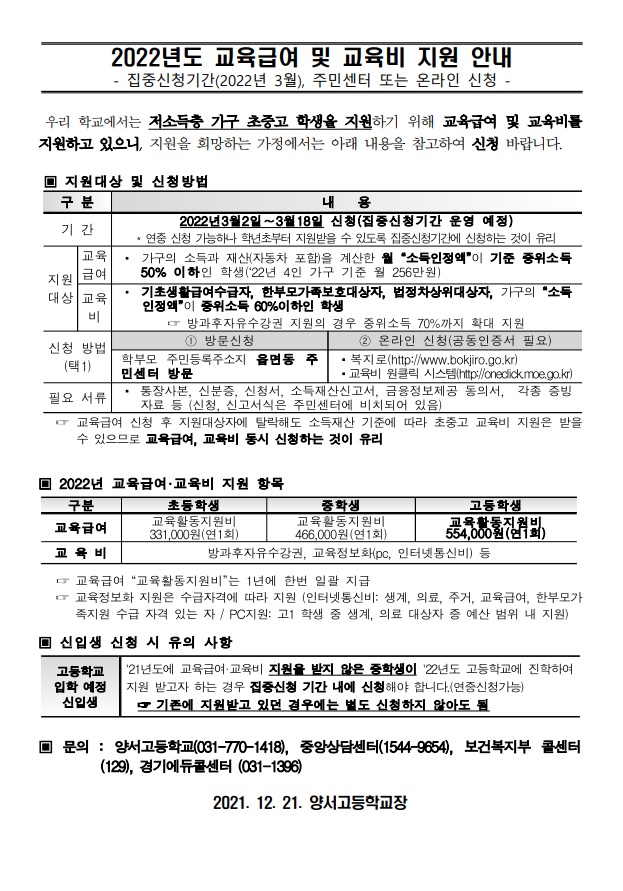 [°øÁö]2022³âµµ ±³À°±Þ¿© ¹× ±³À°ºñ Áö¿ø ¾È³»