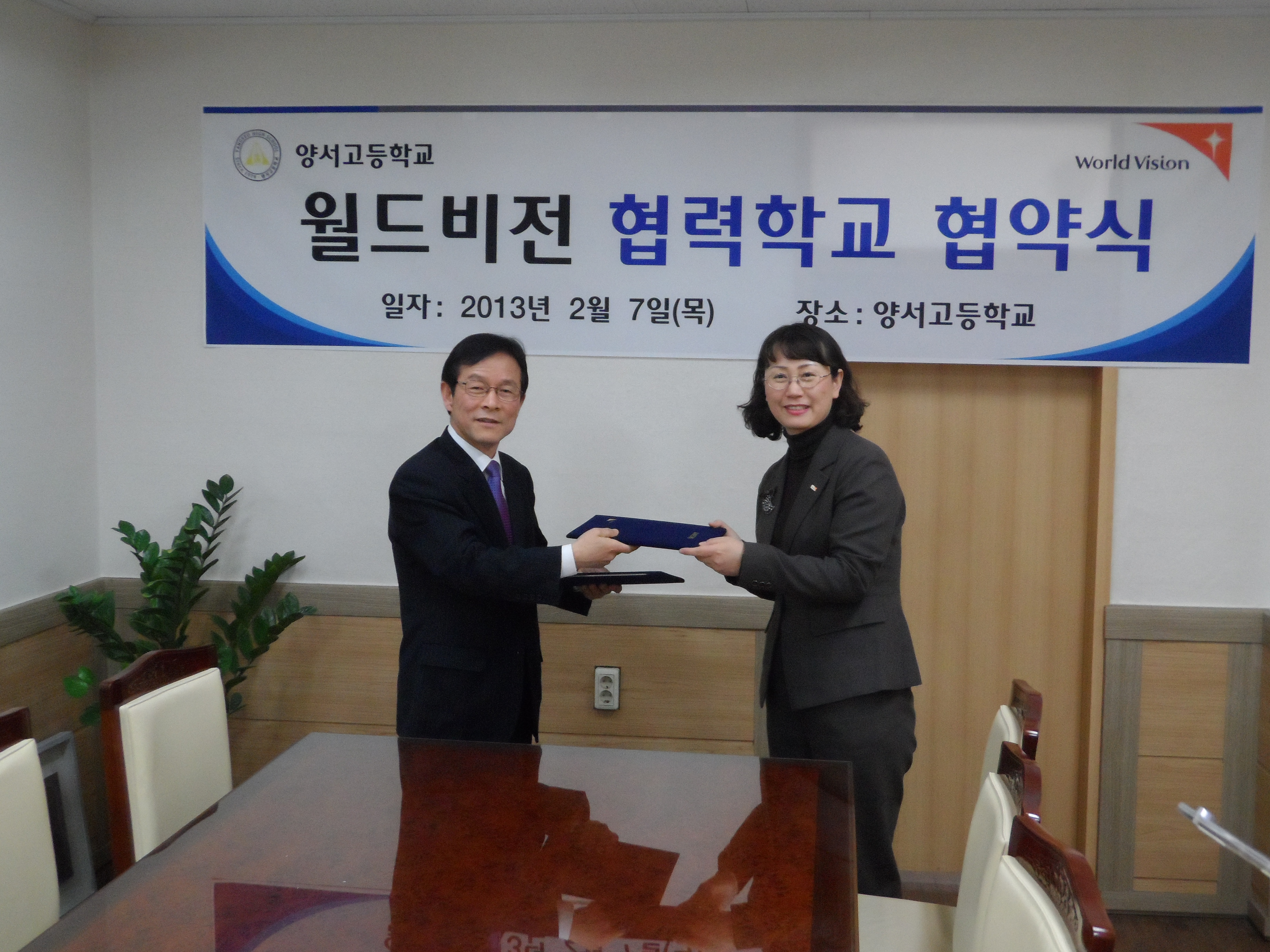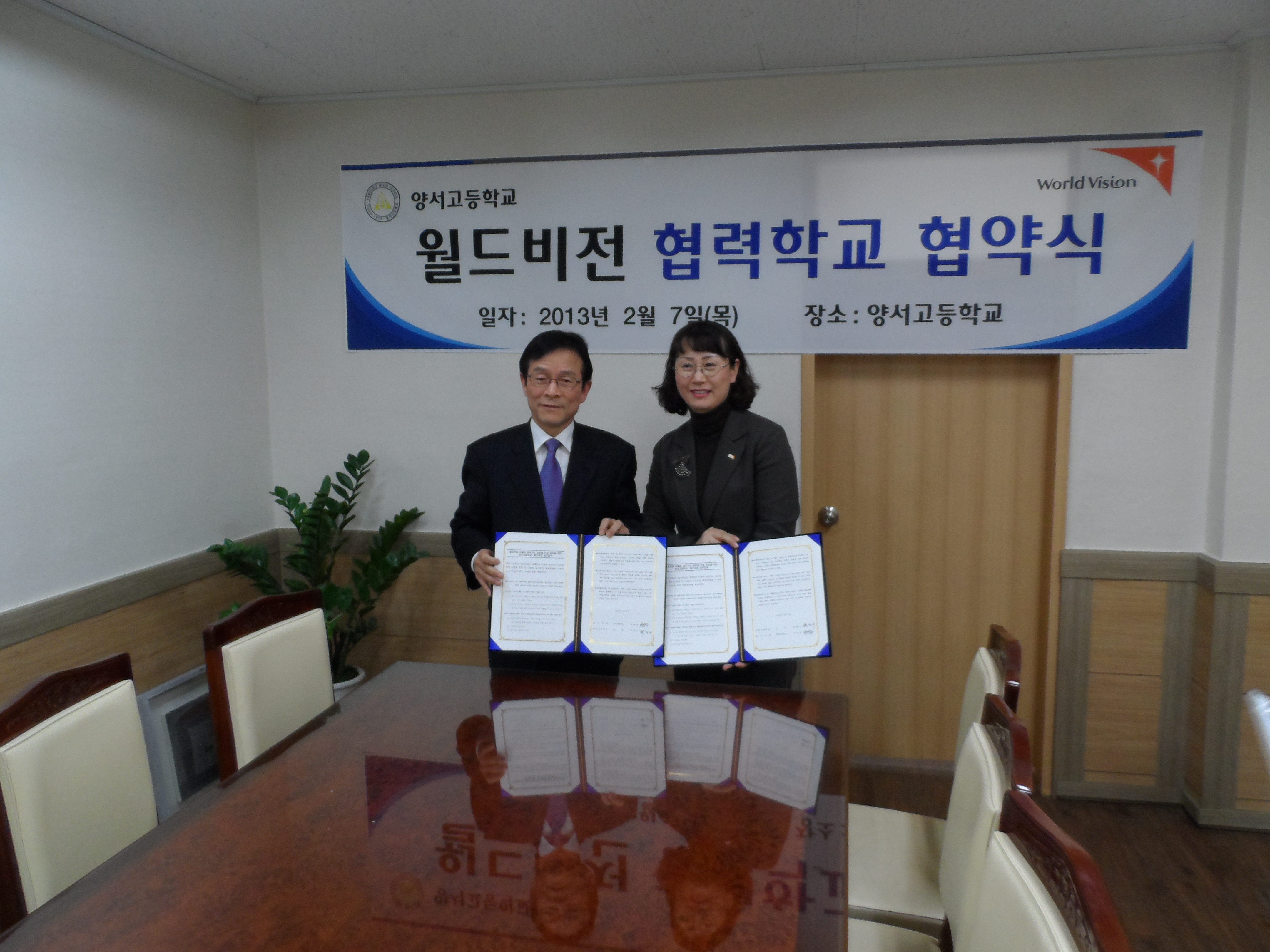 º»±³°¡ ¿ùµåºñÁ¯ÀÇ Çù·ÂÇб³¶ó´Â ÇöÆÇÀ» µé°í ÀÖ´Â 2013³â Çлýȸ ´ëÇ¥µéÀÔ´Ï´Ù.