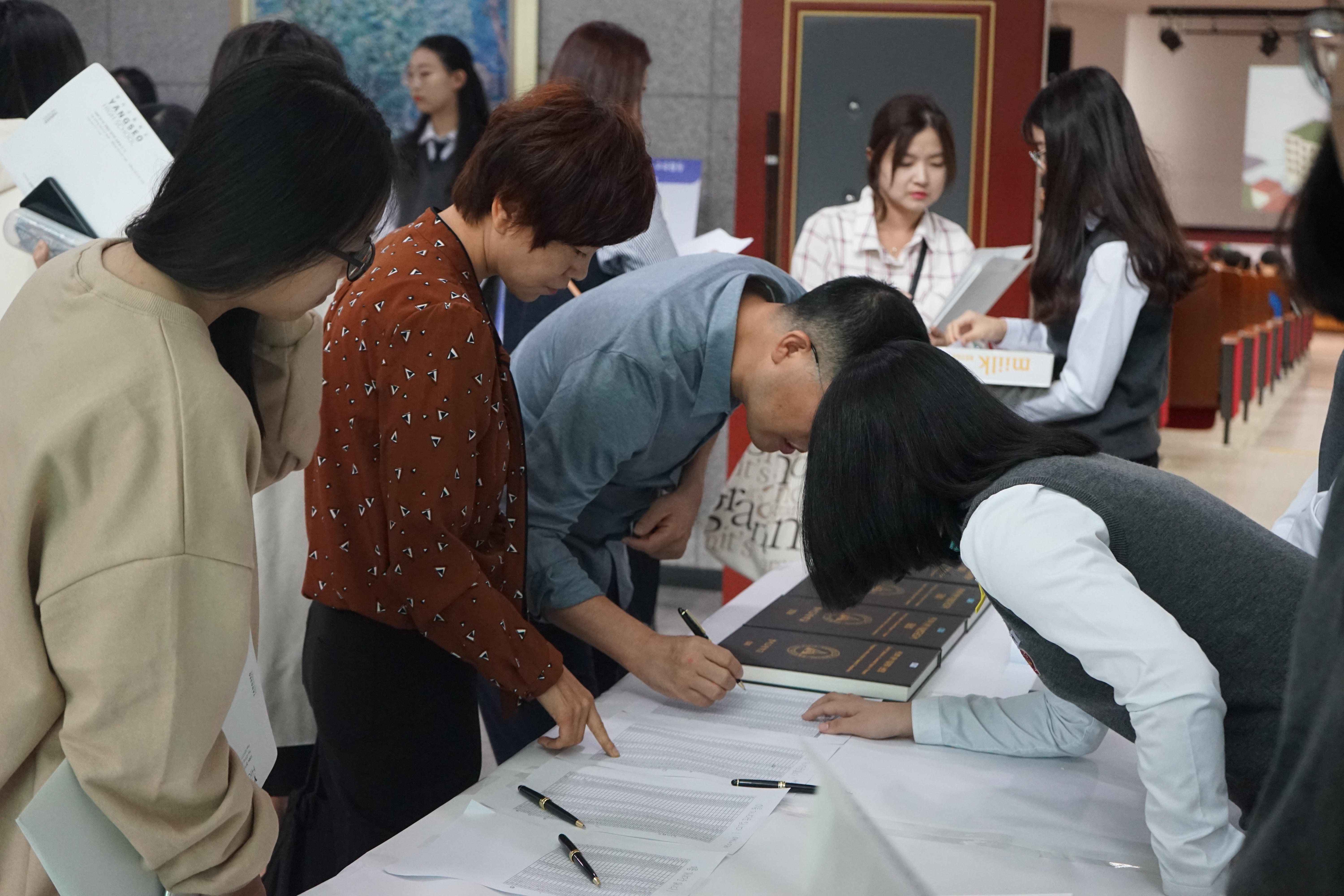 Çб³¿¡ µµÂøÇϽŠÇкθð´ÔµéÀº ¾È³»ÀڷḦ ¹Þ°í ¹æ¸í·ÏÀ» ÀÛ¼ºÇÏ¿´½À´Ï´Ù.
