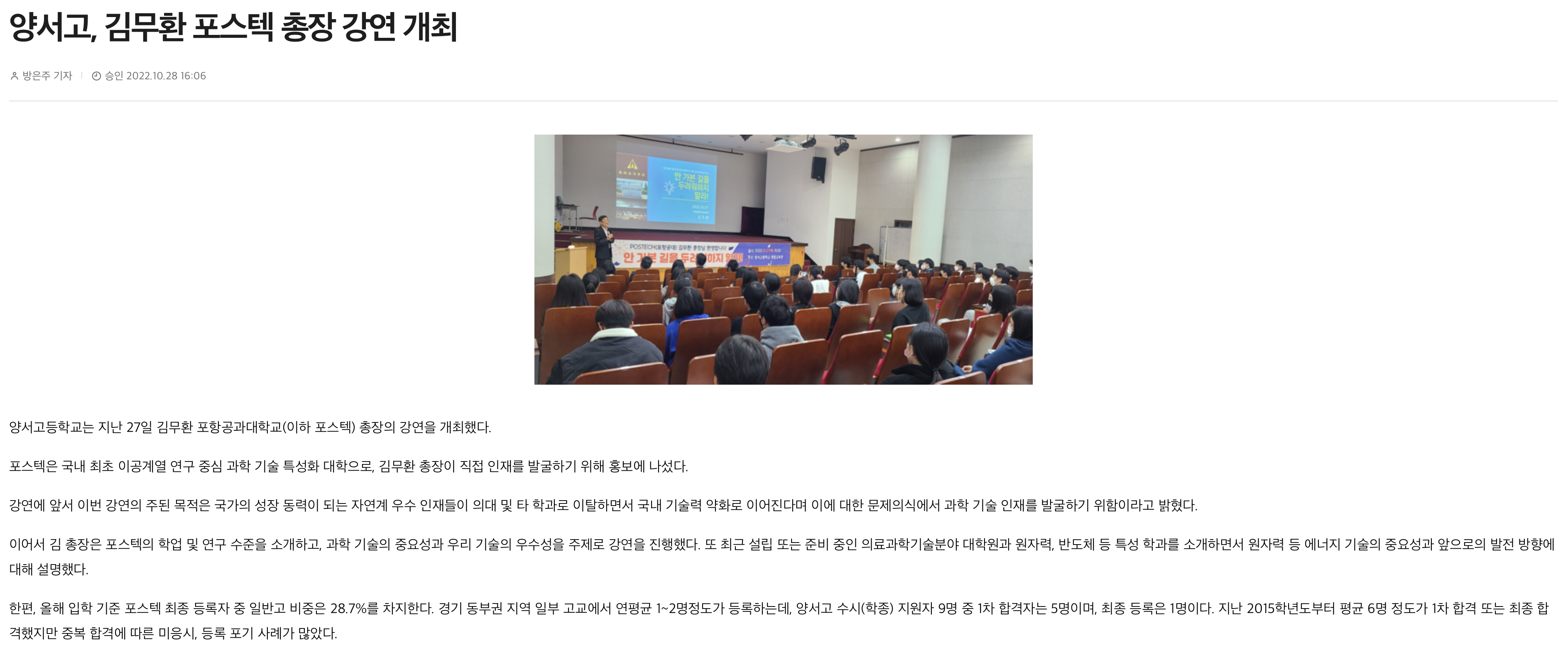 [¾çÆò ½Ã¹ÎÀÇ ¼Ò¸®] "¾ç¼­°í, ±è¹«È¯ Æ÷½ºÅØ ÃÑÀå °­¿¬ °³ÃÖ" (2022.10.28)
