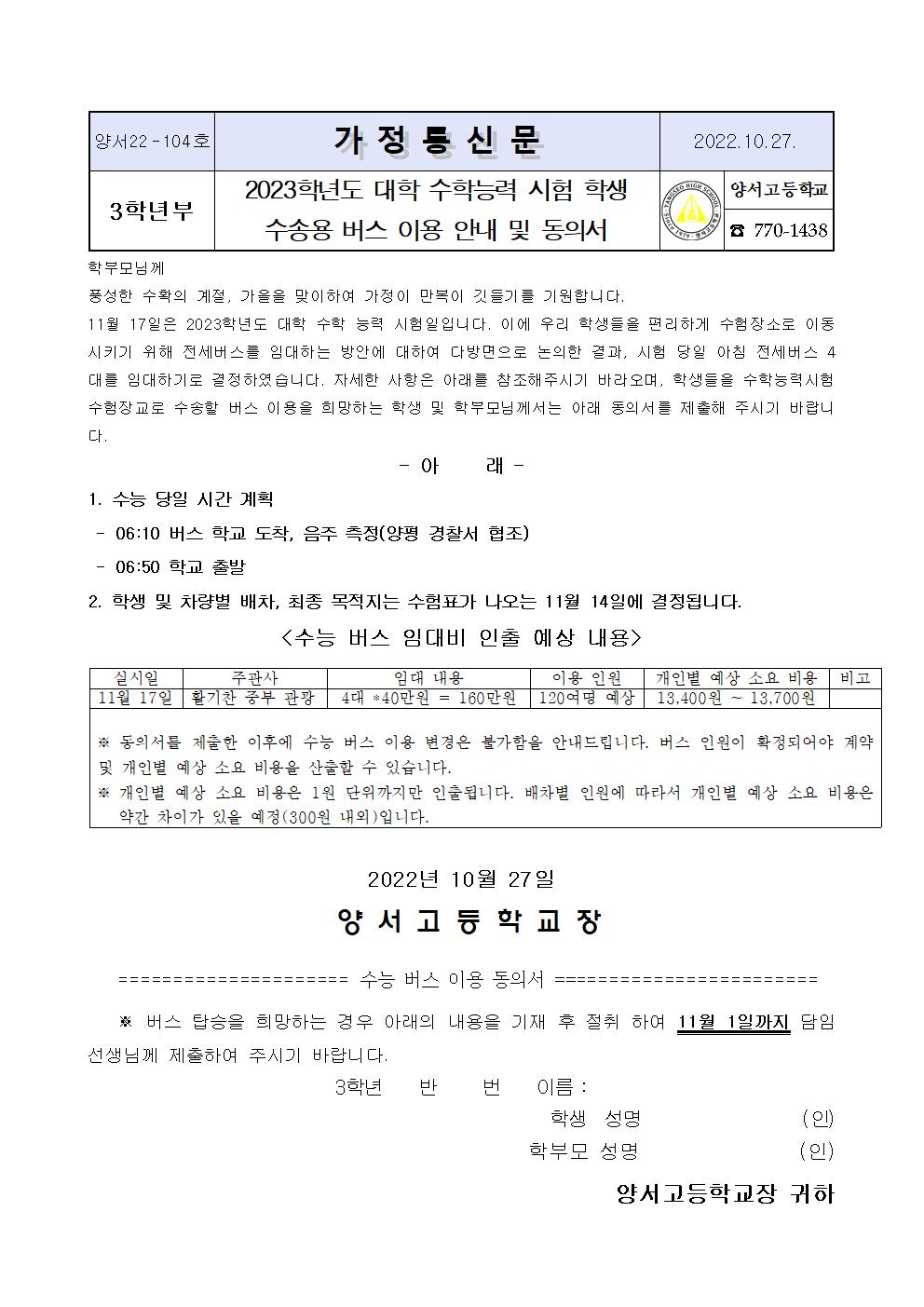 2023Çг⵵ ´ëÇÐ ¼öÇдɷ ½ÃÇè Çлý ¼ö¼Û¿ë ¹ö½º ÀÌ¿ë ¾È³»¿Í µ¿ÀǼ­ ÆÄÀÏÀ» ÷ºÎÇÏ¿À´Ï