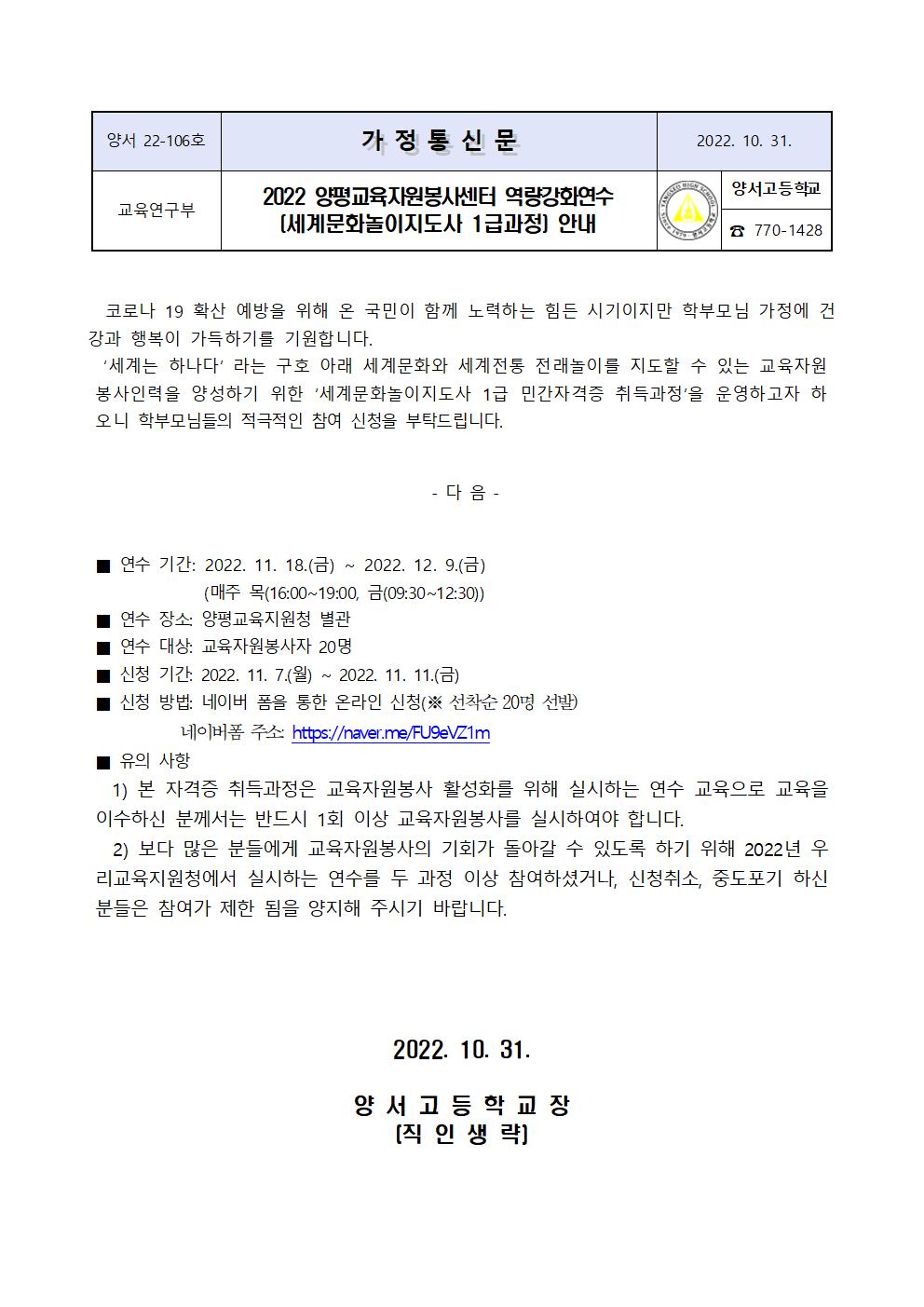 2022 ¾çÆò±³À°ÀÚ¿øºÀ»ç¼¾ÅÍ ¿ª·®°­È­¿¬¼ö ¾È³»