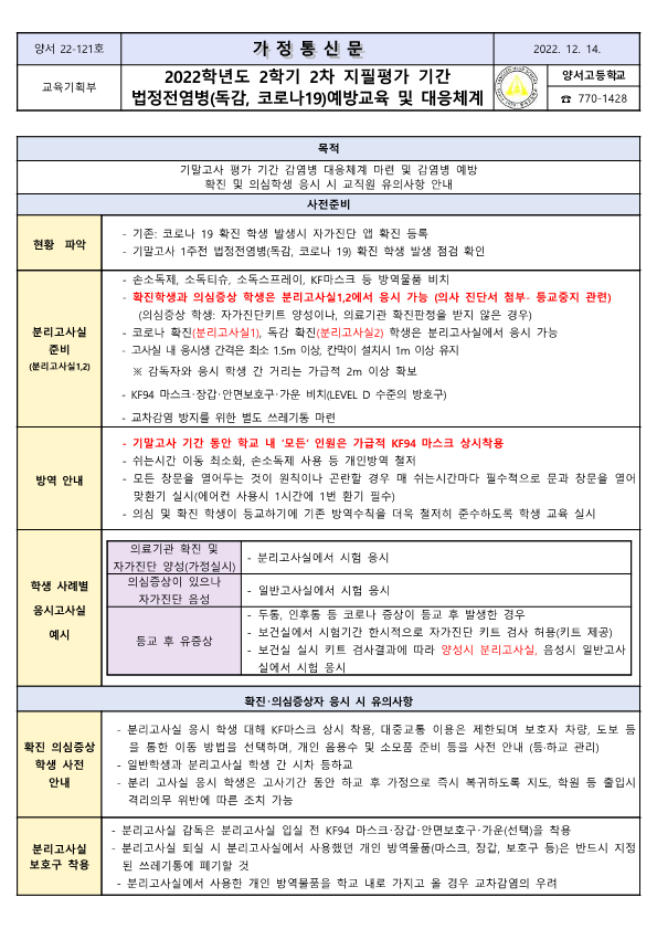 2022Çг⵵ 2Çбâ 2Â÷ ÁöÇÊÆò°¡ ±â°£ ¹ýÁ¤Àü¿°º´(µ¶°¨, Äڷγª19)¿¹¹æ±³À° ¹× ´ëÀÀü°è