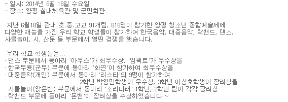140620¼Ò½Ä) 2014³â 6¿ù '¾çÆò û¼Ò³â Á¾ÇÕ¿¹¼úÁ¦' Âü°¡